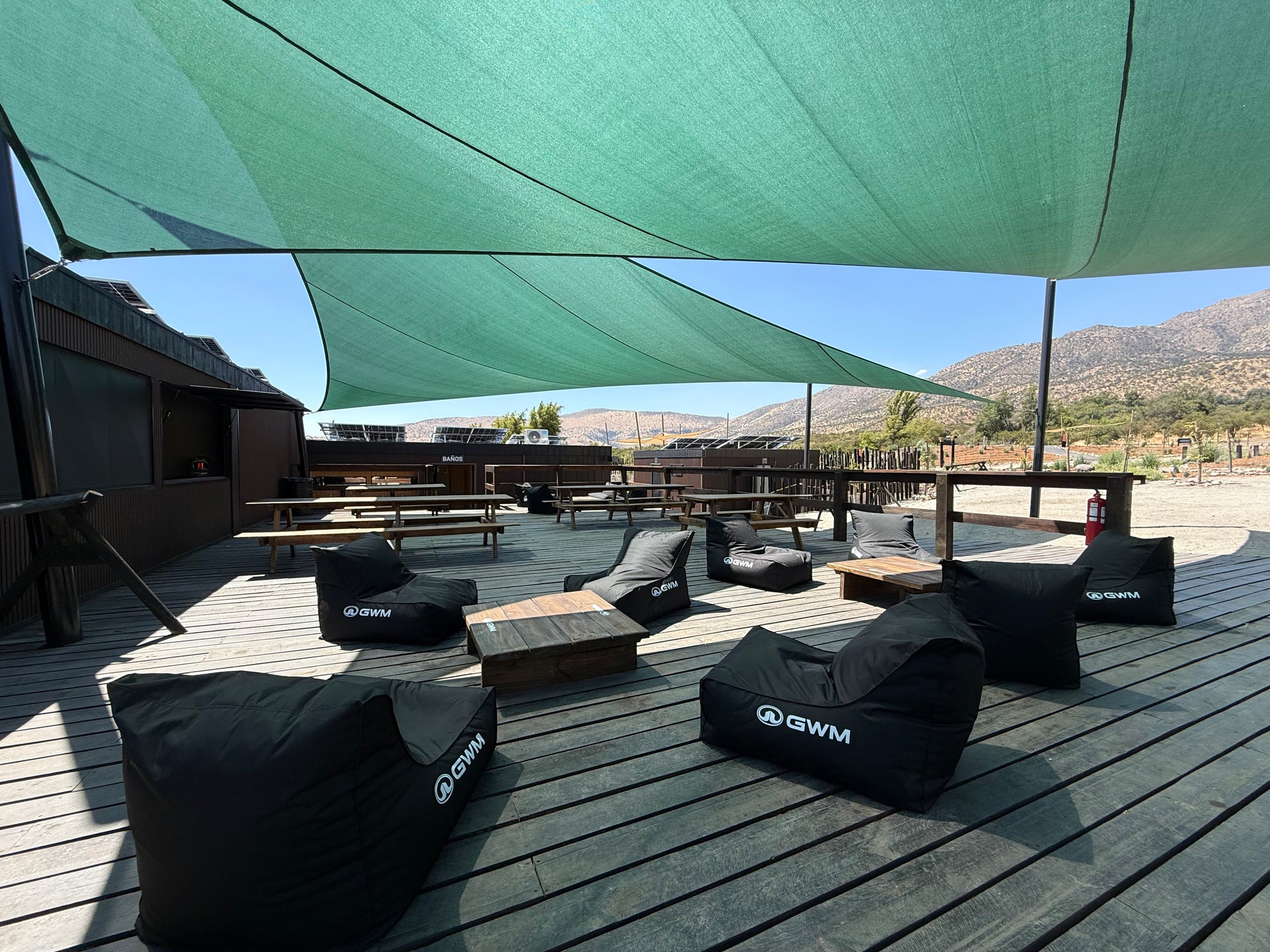 Disfruta y relájate en el Lounge GWM del deck principal del parque. Sillones pera de espuma para descansar, almorzar o reposar. Sillas de madera, mesones y mesas de picnic para compartir con tus cercanos, amigos y riders.
